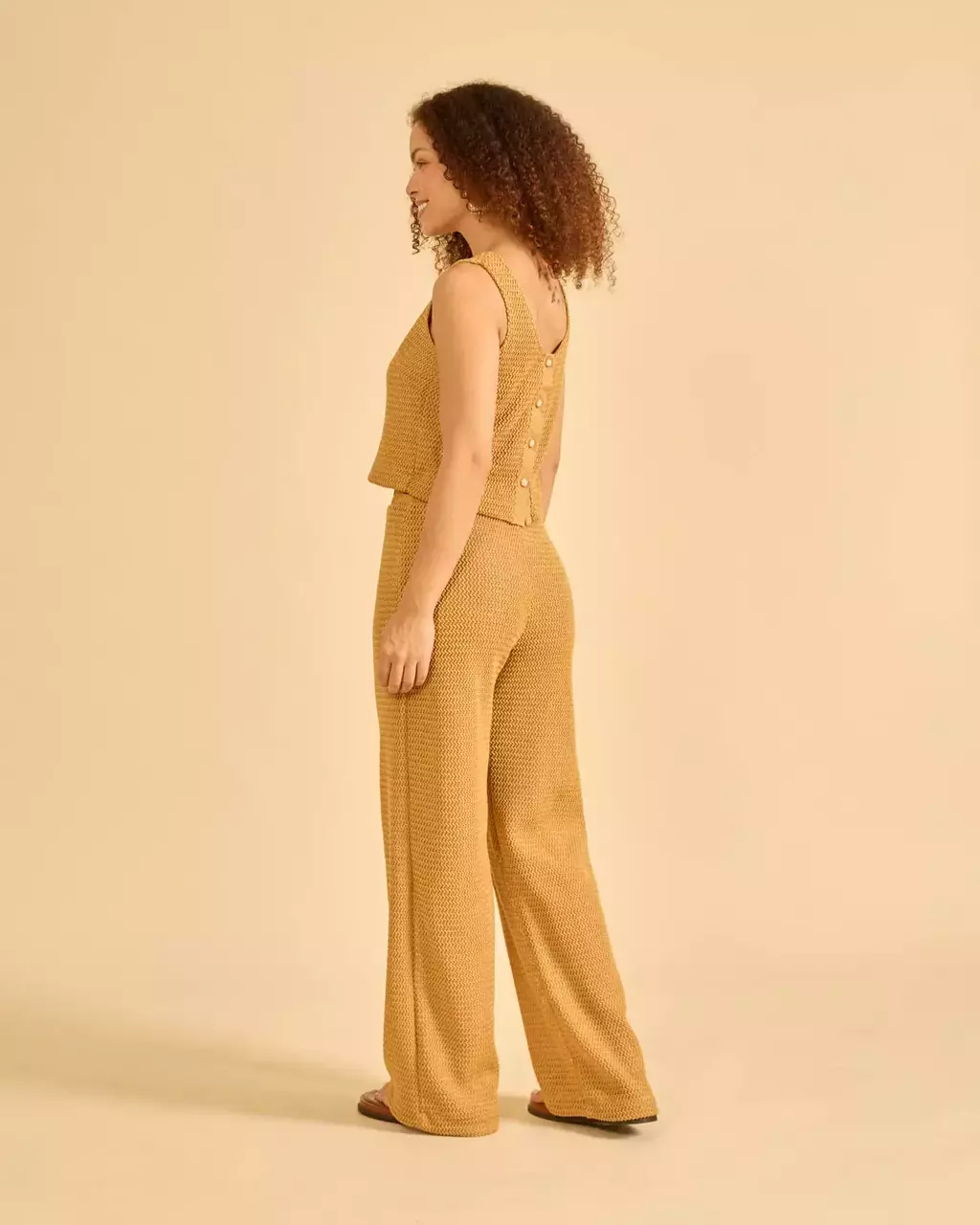 A calça de tricô é daquelas peças que unem conforto e estilo com naturalidade. Com cintura de elástico e modelagem leve, ela se adapta ao corpo com fluidez. O forro curto tipo short garante segurança sem pesar no visual, deixando o caimento mais leve e fresco ideal para os dias quentes da estação. Perfeita para compor produções modernas, relaxadas e cheias de textura. Cor: Naturale Tecido: Viscose e Poliester Feito no Brasil, onde cada peça é pensada para realçar a sua essência. A modelo está usando o tamanho P. Ela tem 1.71 cm de altura, busto de 85 cm, cintura de 70 cm e quadril de 100 cm. A peça veste super bem e realça sua silhueta com muito conforto. |