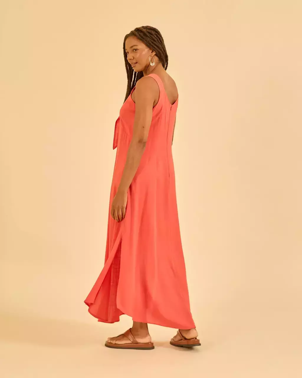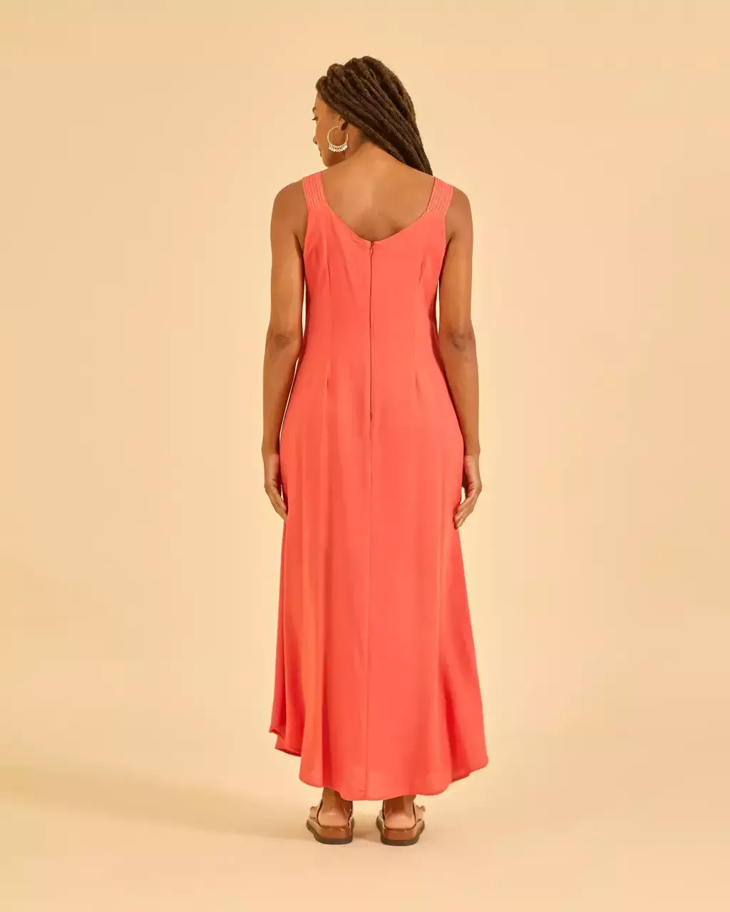 O vestido caminho suave é movimento contínuo e presença leve. Confeccionado em viscose fluida com forro interno, ele acompanha o corpo com naturalidade, revelando fluidez nas fendas laterais e na barra assimétrica que toca o ar a cada passo. O busto é adornado com um laço delicado e nó simbólico que une forma e afeto. As alças largas garantem sustentação com conforto, enquanto o zíper nas costas oferece praticidade e acabamento limpo. Uma peça que transita entre o sutil e o marcante como uma brisa que chega silenciosa, mas transforma o instante. Cor: Goiaba | Tecido: Viscose Feito no Brasil, onde cada peça é pensada para realçar a sua essência. A modelo está usando o tamanho P. Ela tem 1.75cm de altura, busto de 88cm, cintura de 70cm e quadril de 98cm. A peça veste super bem e realça sua silhueta com muito conforto. |