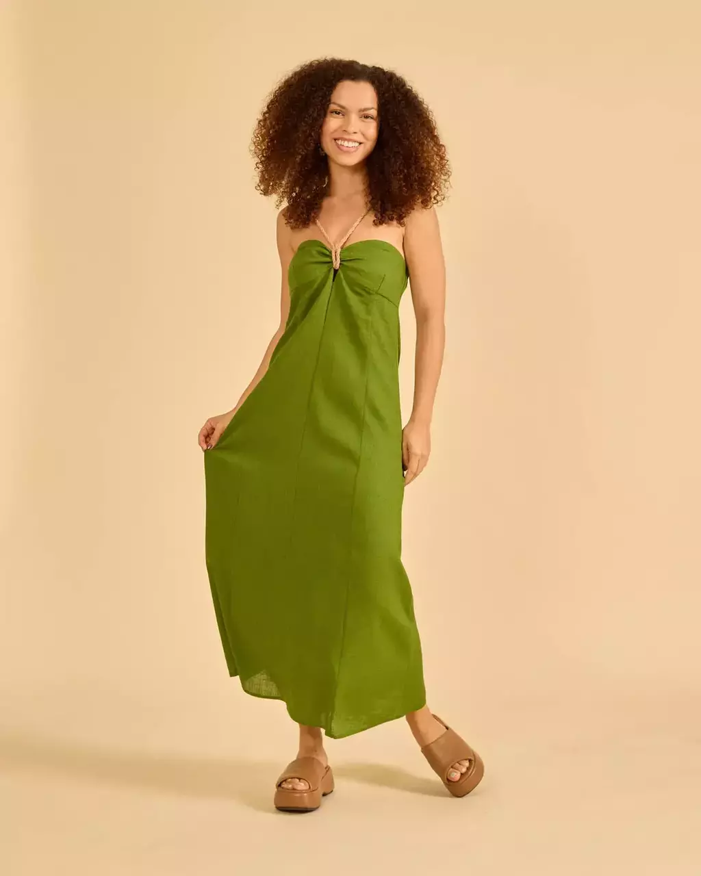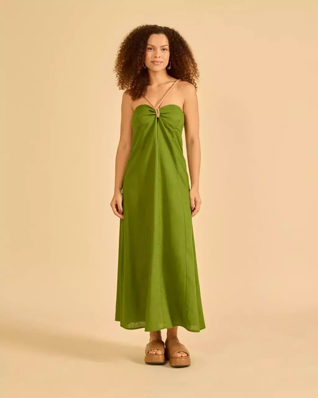 O vestido longo é daqueles que surpreendem nos detalhes. Com amarração em corda mostarda no busto, ele traz um contraste moderno e cheio de charme. O recorte vazado no decote dá um toque delicado, enquanto a barra assimétrica garante leveza e movimento. O zíper nas costas deixa o vestir prático, sem tirar o estilo. Uma peça que une conforto, frescor e personalidade na medida certa perfeita pra quem gosta de se sentir linda sem esforço. Cor: Folha Tecido: Viscose Feito no Brasil, onde cada peça é pensada para realçar a sua essência. A modelo está usando o tamanho P. Ela tem 1.71 cm de altura, busto de 85 cm, cintura de 70 cm e quadril de 100 cm. A peça veste super bem e realça sua silhueta com muito conforto. |